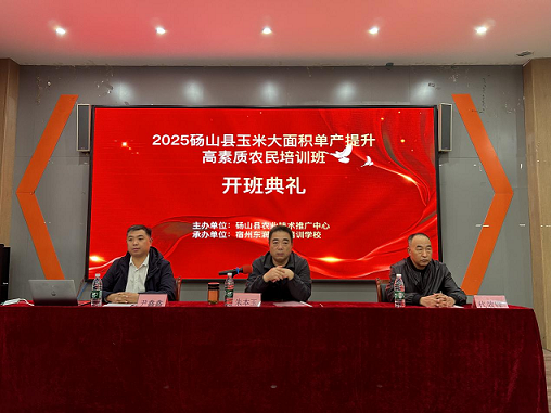 10月21日,由砀山县农业技术推广中心组织、宿州东润职业培训学校承办的“2025年砀山县玉米大面积单产提升高素质农民培训班”正式开班。全县50名家庭农场主、合作社带头人和种粮大户齐聚县农技推广中心,开启为期8天的系统学习,为明年玉米增产奠定技术基础。