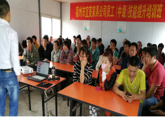 宿州市宜美家具有限公司家具制作工技能提升培训在市人社局领导多次现场指导和宜美家具公司大力支持下,我校组织的此次培训圆满结束。