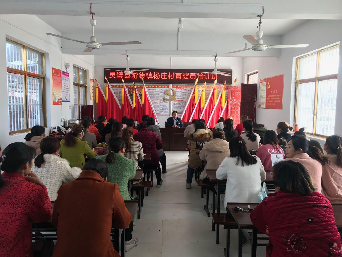 2019年11月19日尤集镇杨庄村育婴员培训班在灵璧县人社局领导多次现场指导和杨庄村领导的大力支持下,我校组织的此次培训圆满结束。