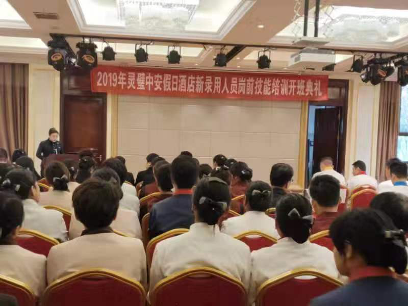 为了进一步推动企业发展,落实民生工程政策,在灵璧县人力资源保障局领导的指导下,我校组织的灵璧中安假日酒店有限公司餐厅服务员(初级)岗前技能培训班开班典礼于2019年11月12日下午15时在中安酒店隆重举行。